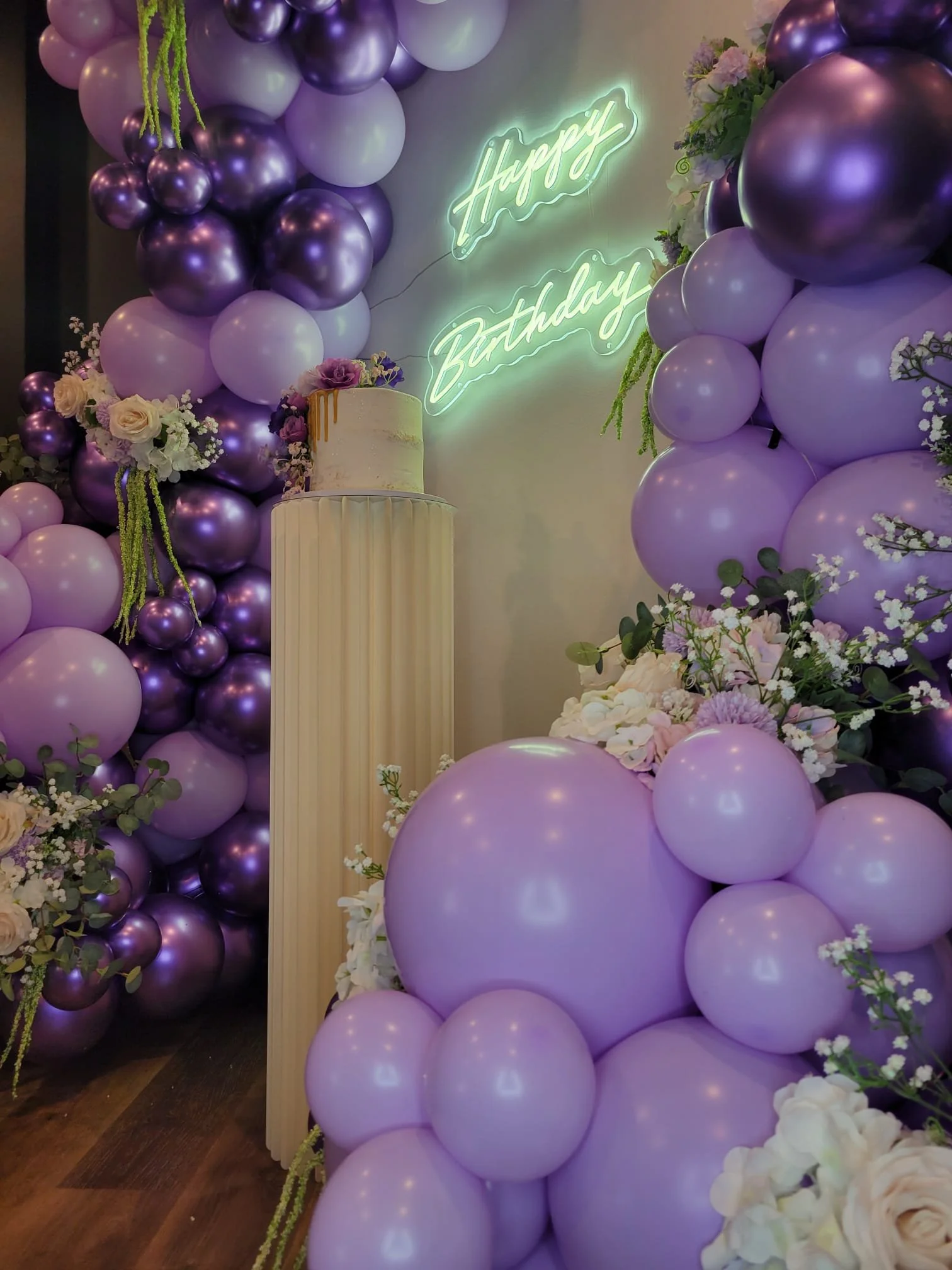 Make a bold statement with a stunning balloon garland that brings an air of luxury to any event. This organic design can be as grand as you wish, featuring a mix of balloon sizes that create depth and texture, transforming the garland into a true work of art. A showstopper on its own, it can also incorporate florals, foils, printed balloons, and anything else you envision to make it uniquely yours. It's the perfect piece to elevate your celebration!